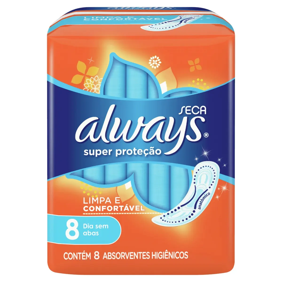 Absorvente Básico Malha Seca Sem Abas Always - Simples e Prático! O Absorvente Básico Malha Seca Sem Abas Always é a escolha ideal para quem busca conforto e segurança durante o período menstrual. Com 8 unidades em cada embalagem, você terá o suporte que precisa para os dias mais intensos. Principais características: Conforto: A malha seca proporciona uma sensação de frescor e conforto, ideal para o uso diário.Praticidade: Sem abas, facilita a aplicação e garante discrição, permitindo que você se mova livremente.Absorção eficiente: Desenvolvido com tecnologia que absorve rapidamente, evitando vazamentos e mantendo a pele seca.Para quem é indicado? Este absorvente é perfeito para todas as mulheres que buscam uma opção prática e confortável, sendo adequado para fluxos leves a moderados. Dicas de uso: Coloque o absorvente na parte interna da calcinha, ajustando conforme necessário. Troque regularmente para garantir a máxima proteção e conforto. Qualidade Always: Confie na marca Always, reconhecida por sua tradição e compromisso com a qualidade dos produtos femininos. Garanta o seu Absorvente Básico Malha Seca Sem Abas Always e viva seus dias com mais tranquilidade e conforto!