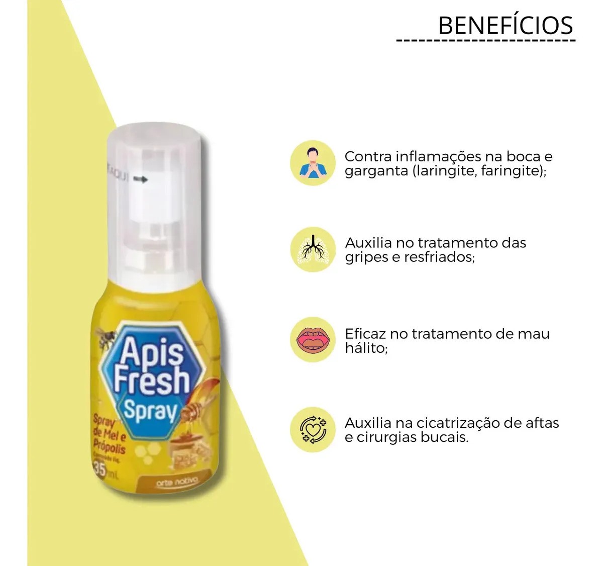 Descubra o Apis Fresh Spray Mel com Própolis 35ml: uma opção de higiene bucal em spray com sabor suave de mel e hortelã. Prático para uso diário, oferece refrescância rápida sem complicações. Ingredientes principais incluem água, mel, própolis e hortelã, com mentol para sensação de hálito fresco. Ideal para manter a cavidade bucal agradável ao longo do dia. Conteúdo: 35 ml. Armazenamento em temperatura ambiente.