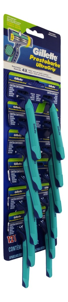 Barbeador descartável Gillette Ultra Grip 12 unidades, projetado para oferecer um corte suave e rápido. A embalagem traz 12 unidades com lâminas duplas para um resultado eficiente. A cabeça flexível acompanha os contornos do rosto, enquanto o cabo ergonômico proporciona maior controle durante o uso. Possui tira lubrificante para deslizamento suave e aparador de precisão para detalhes. Ideal para uso diário, viagens ou reposição rápida.
