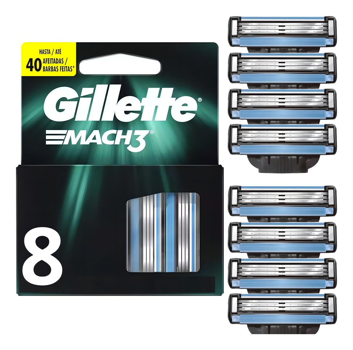 Cargas Mach3 Gillette com 8 unidades, compatível com aparelhos Mach3, oferece lâminas com estrutura de três lâminas para um barbear eficiente. A fita lubrificante facilita o deslizamento durante o uso e ajuda a manter a pele suave. Perfeito para reposição rápida. Conteúdo estável e confiável, ideal para quem prioriza praticidade, economia e qualidade em barbear diário.