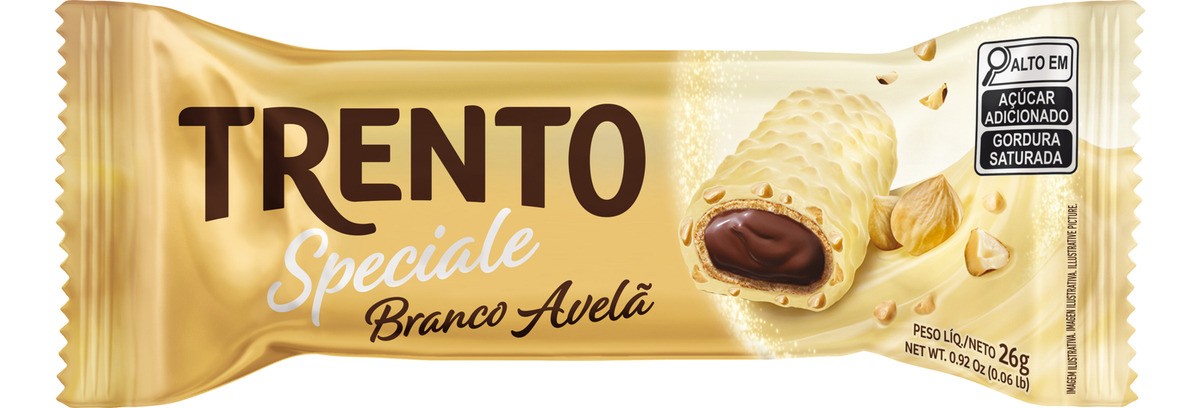 Chocolate branco com avelã Peccin Trento Speciale.Cada unidade pesa 26 g, totalizando 312 g por embalagem com 12 unidades. O creme de avelã envolve o chocolate branco, com pedaços crocantes de avelã para uma textura suave e sabor marcante.Ideal para um lanche rápido, café da tarde ou sobremesa simples.Produto da marca Peccin em embalagem prática, perfeita para compartilhar ou ter em casa, no escritório ou em ocasiões especiais.Armazene em local fresco e seco para manter o sabor e a consistência.