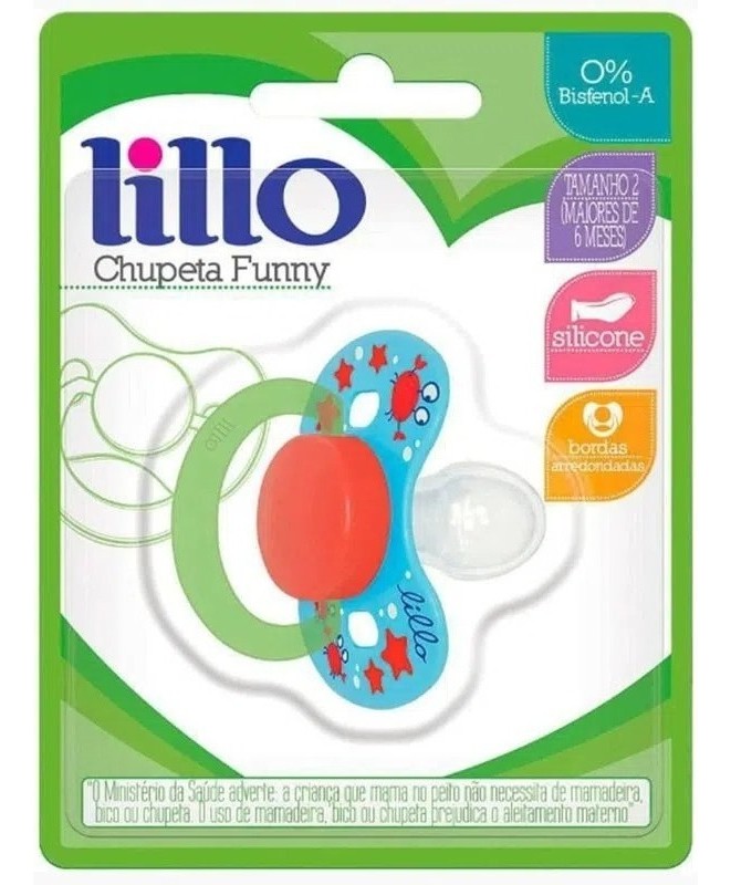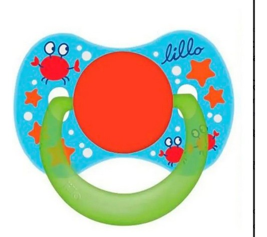 A Chupeta de silicone Funny T1 Azul da marca Lillo é indicada para bebês de 0 a 6 meses. Possui bico de silicone macio, formato de escudo com bordas arredondadas e bico Nº1. A peça é leve, com boa ventilação e prática para o dia a dia. Possui argola para fixação de prendedores. Decoração de caranguejo. Composição: polipropileno e silicone. Livre de BPA.