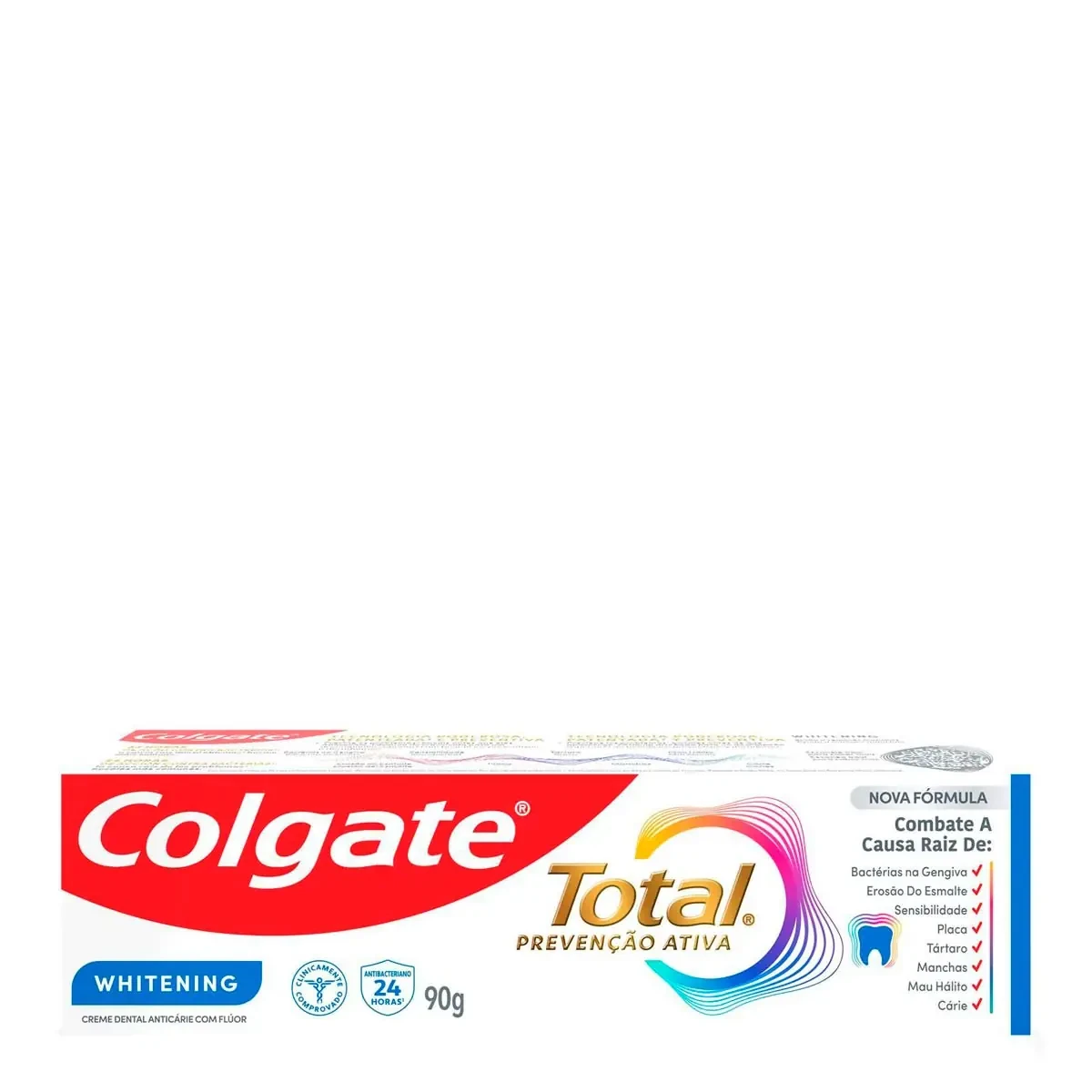 A pasta de dente Colgate Total 12 Whitening cuida da sua boca por completo, sua fórmula antibacteriana proporciona defesa ativa contra bactérias por até 12 horas* E remove suavemente as manchas superficiais do dente para um sorriso branco! (*com uso contínuo de 4 semanas)