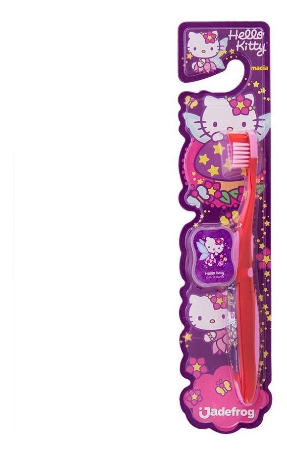 Descrição de consumidor final com foco em benefícios e características do produto. A escova dental infantil Jadefrog com design Hello Kitty foi criada para tornar a escovação mais prazerosa para crianças. Possui cerdas macias que proporcionam uma limpeza suave, tamanho adequado para mãos pequenas e cabo ergonômico que facilita o manuseio. O visual encantador da Hello Kitty estimula bons hábitos de higiene bucal desde cedo, sem prometer resultados médicos. Ideal para uso diário, mantendo higiene bucal de forma simples e divertida.