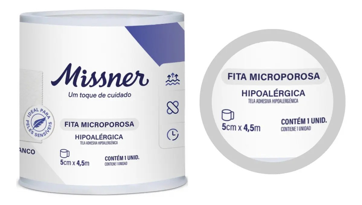 Missner Fita Micropore 5 cm x 4,5 m é uma fita adesiva microporosa, suave e respirável, ideal para fixar curativos com conforto. Com 5 cm de largura e 4,5 m de comprimento, oferece boa cobertura para diversas áreas do corpo. O material permite que a pele respire, reduzindo irritações e mantendo o uso diário confortável. Pode ser rasgada manualmente, facilitando a aplicação. Proporcionando excelente relação custo-benefício para uso em casa ou em ambientes profissionais. A linha é hipoalergênica, o que sugere menor risco de irritação em peles sensíveis. Fabricante: Missner. Produto prático para cuidados diários de primeiros socorros.
