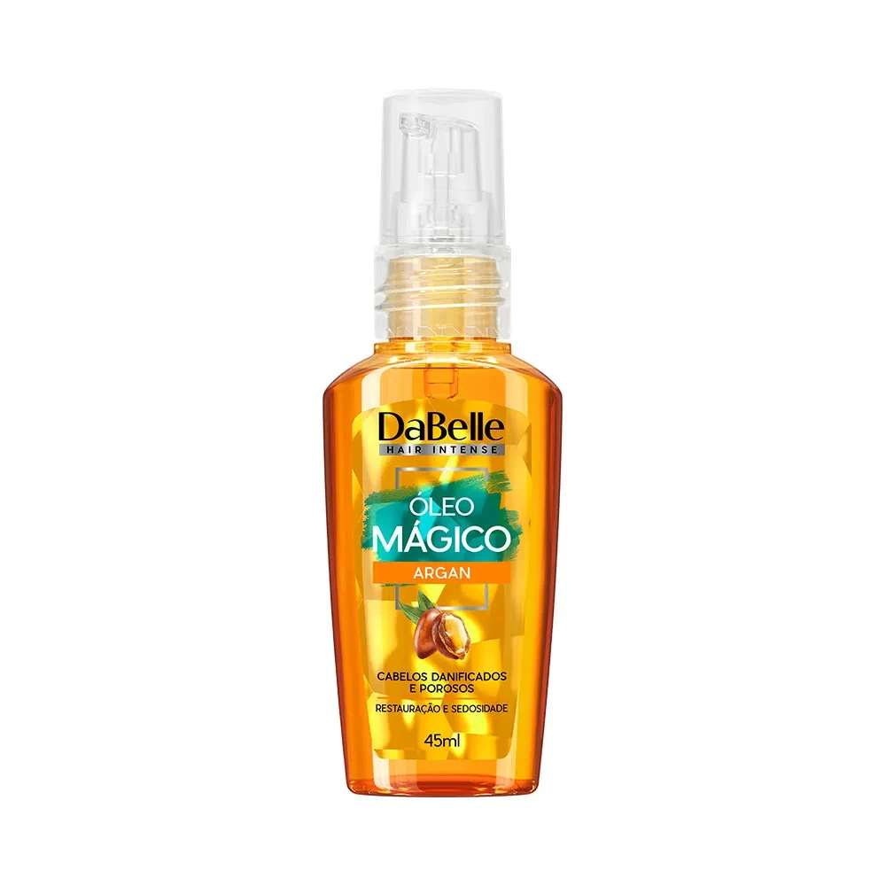 O Óleo Mágico Argan Dabelle é um óleo capilar formulado para proporcionar brilho, nutrição e acabamento mais suave aos fios. Indicada para quem busca reduzir o frizz e recuperar o aspecto saudável das pontas, a fórmula à base de óleo de argan confere toque sedoso sem pesar.