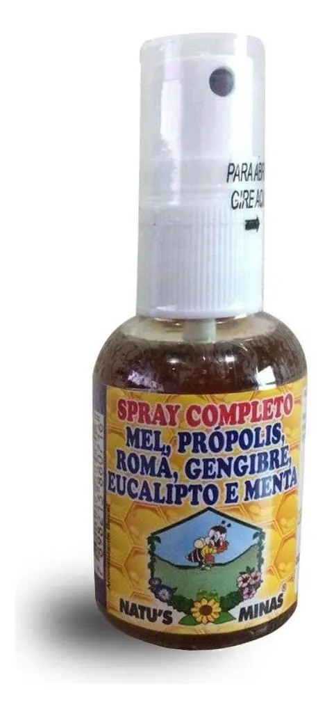Spray completo com mel, própolis, romã, gengibre, eucalipto e menta, sem álcool. Embalagem prática de 30 ml para uso diário, com aplicação conveniente e suave. Fórmula natural com ingredientes tradicionais para quem busca sabor agradável e refrescância. Sem glúten e adequado para quem valoriza opções de consumo com componentes naturais. Embalagem compacta ideal para levar na bolsa ou no trabalho. Conservação em temperatura ambiente e seguir as instruções da embalagem.