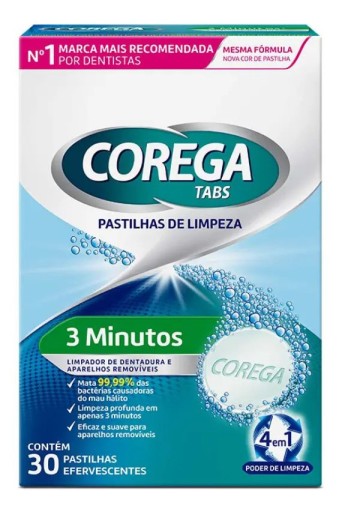 Dentaduras e limpeza Pastilhas Corega Tabs para Limpeza de Dentadura - 30 Pastilhas