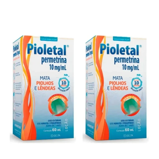 Antiparasitários e antiprotozoários 2 Pioletal Permetrina Loção Com 60ml Tratamento De Piolhos E Le...