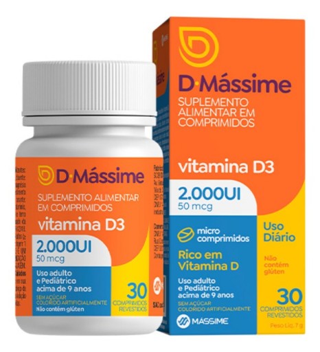 Vitamina D Massime Vitamina D3 2000UI - 30 comprimidos sem sabor